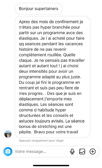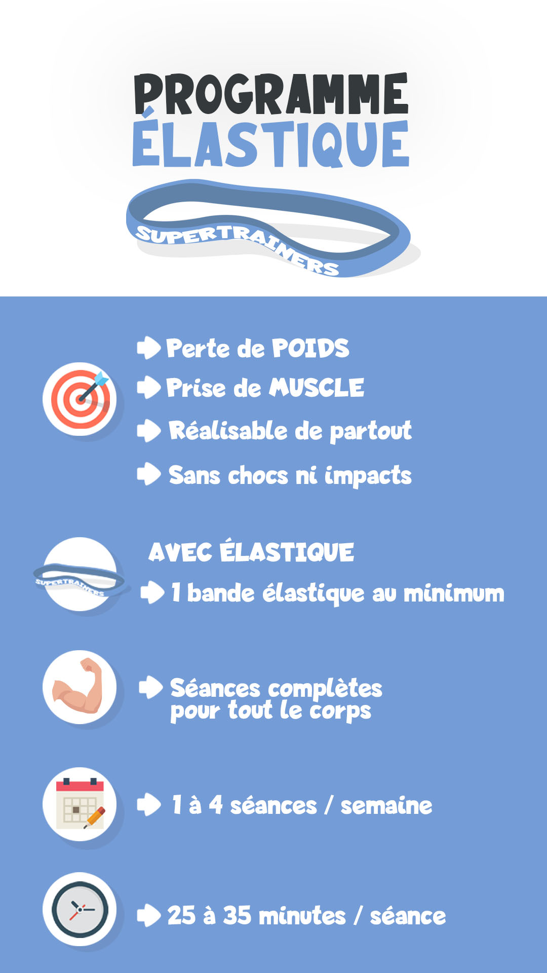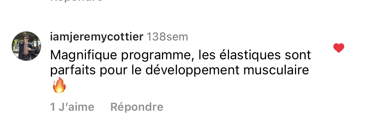 Flexibilité horaire : Vous pouvez pratiquer où et quand vous le souhaitez, sans dépendre des horaires contraignants d'une salle de sport. Que ce soit chez vous, en voyage, ou même en pause déjeuner au bureau, le programme et les élastiques vous accompagnent partout