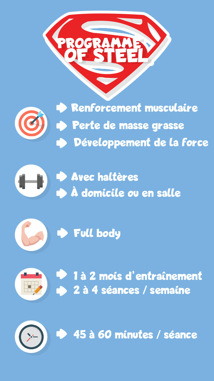 Programme OF STEEL est un programme adapté pour un objectif de renforcement musculaire, de perte de masse grasse et pour développer sa force.